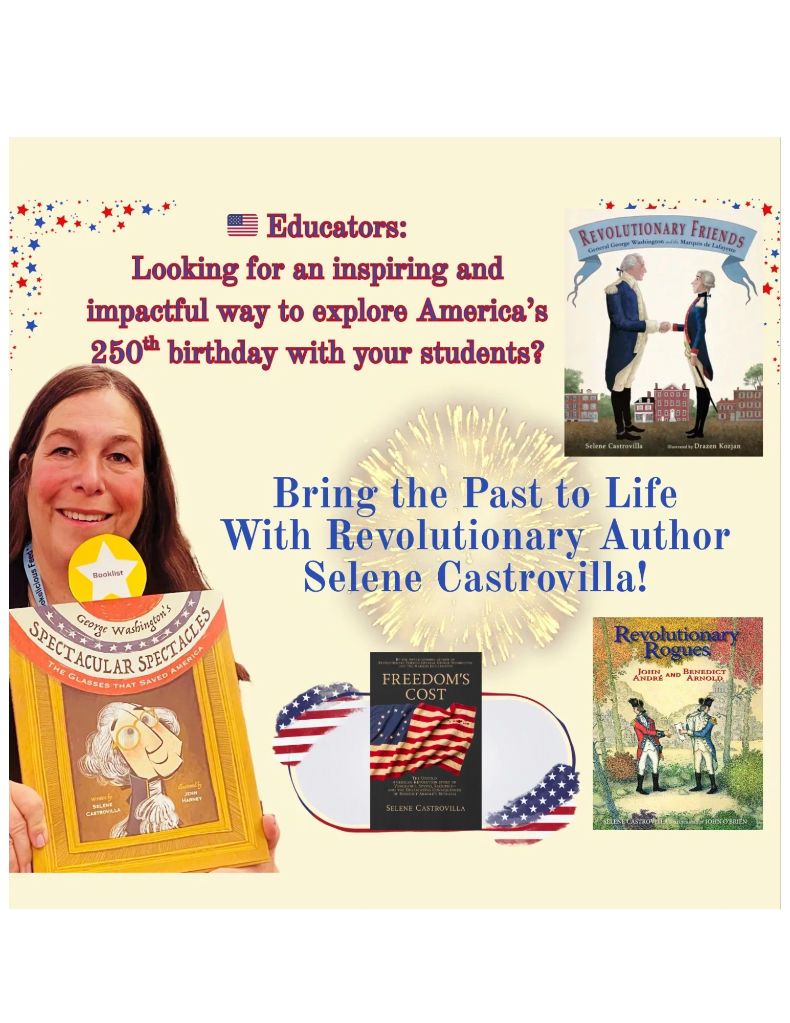 It is vital to learn about our history, and even more vital to take pleasure in learning. Selene Castrovilla's collection of American Revolution books take you on a human journey through the war. Selene is proud to write American history books for elementary students, and secondary students too!