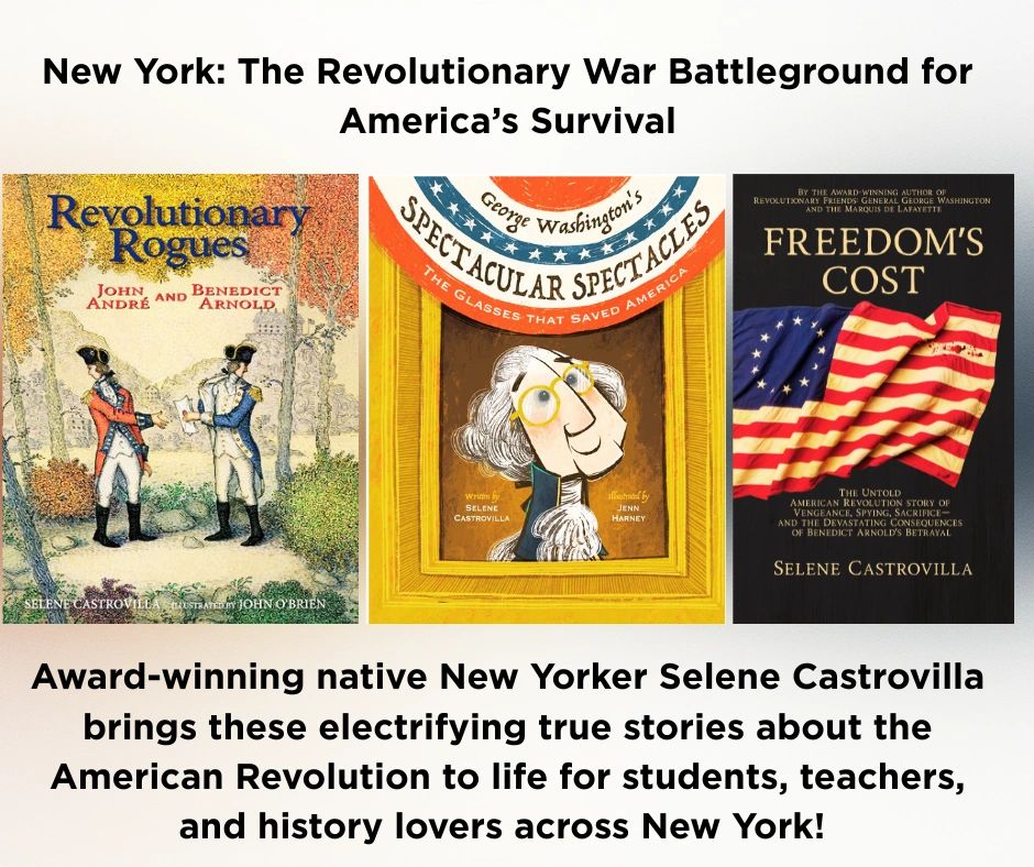 Award-winning NY author Selene Castrovilla brings true American Revolution stories to life for schools, libraries, historical societies, museums, and patriotic organizations and heritage groups. Perfect for our 250th anniversary celebration!